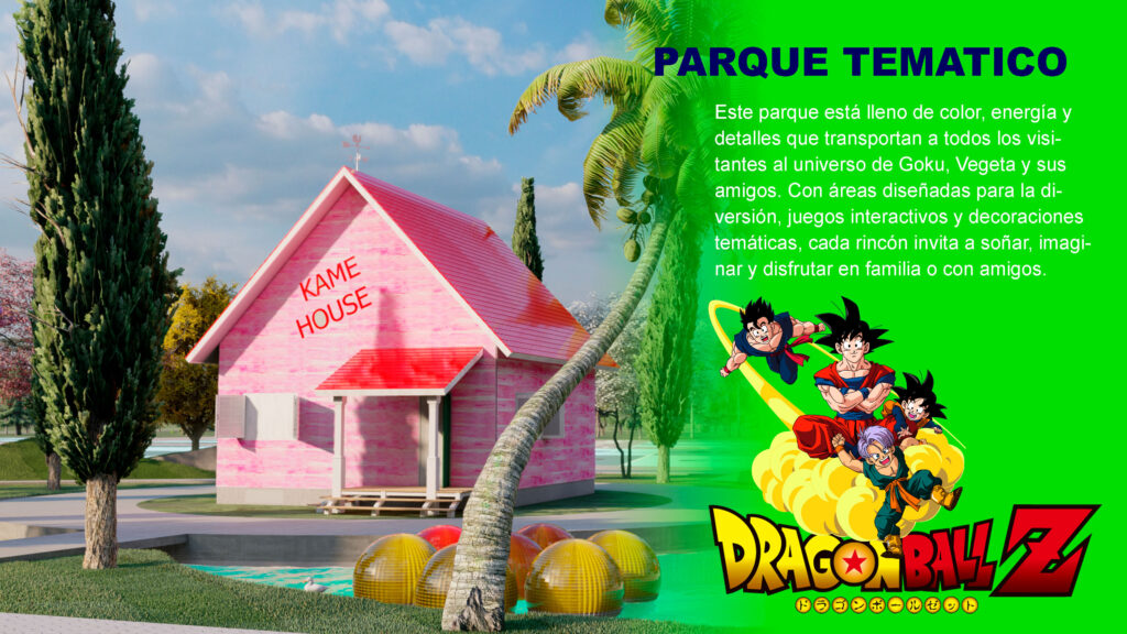 Este parque está lleno de color, energía y detalles que transportan a todos los visitantes al universo de Goku, Vegeta y sus amigos. Con áreas diseñadas para la diversión, juegos interactivos y decoraciones temáticas, cada rincón invita a soñar, imaginar y disfrutar en familia o con amigos.
