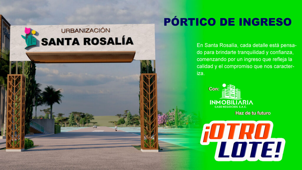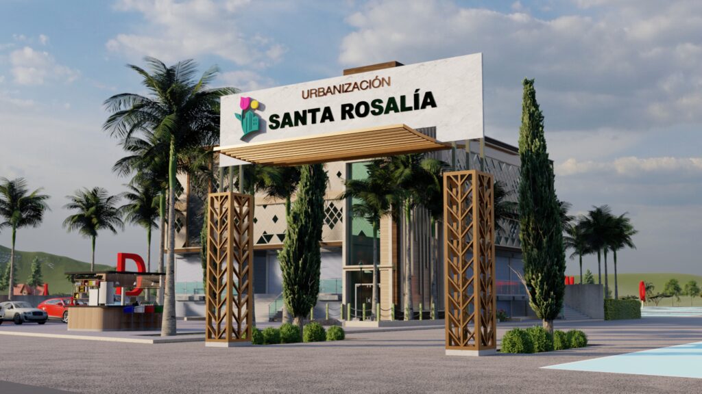 El pórtico de ingreso de urbanización Santa Rosalía es la primera impresión de un espacio pensado para ofrecer seguridad, elegancia y bienvenida. Diseñado con un estilo moderno y armonioso, este acceso principal refleja la calidad y el cuidado que caracterizan nuestro proyecto.